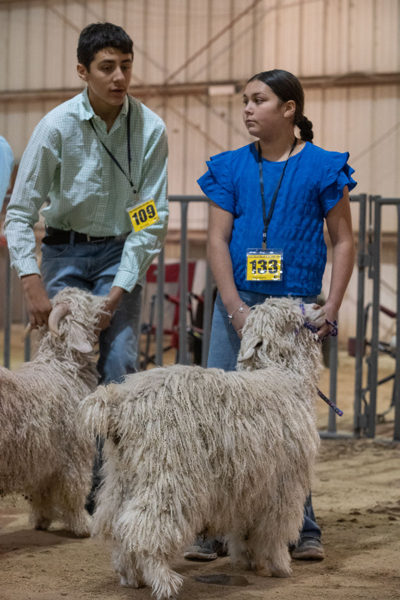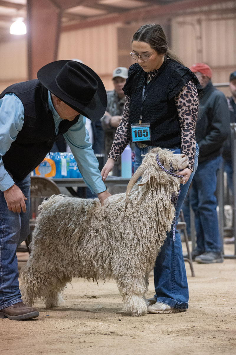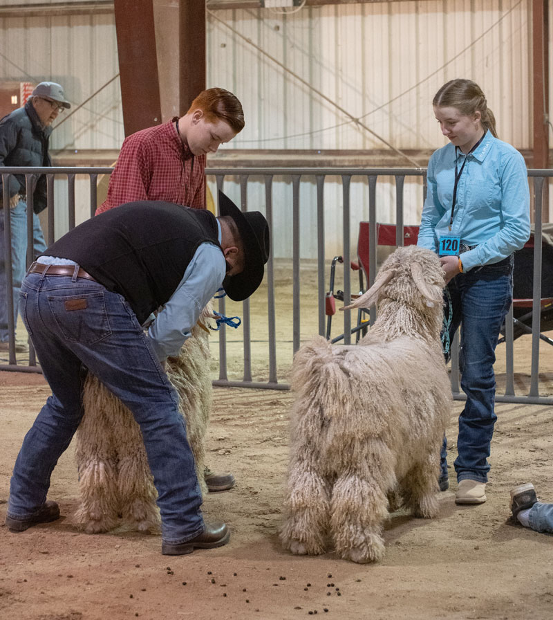 Andy Laughlin examines their goats. |