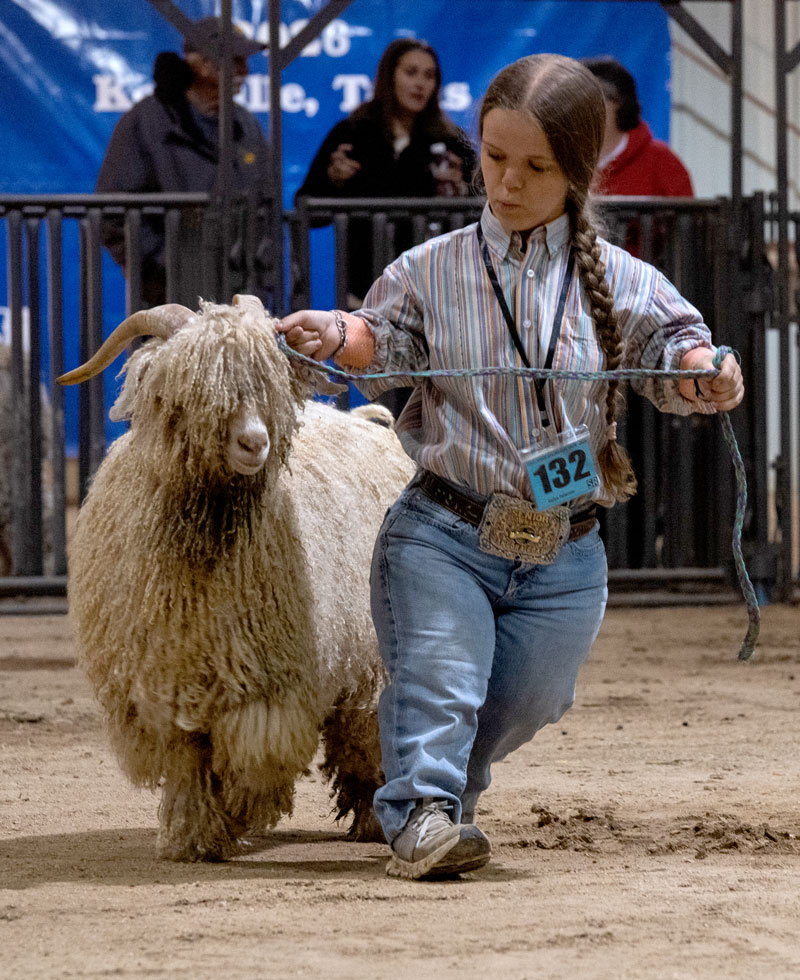 | Trenlie Kocurek leads her goat to be judged. |