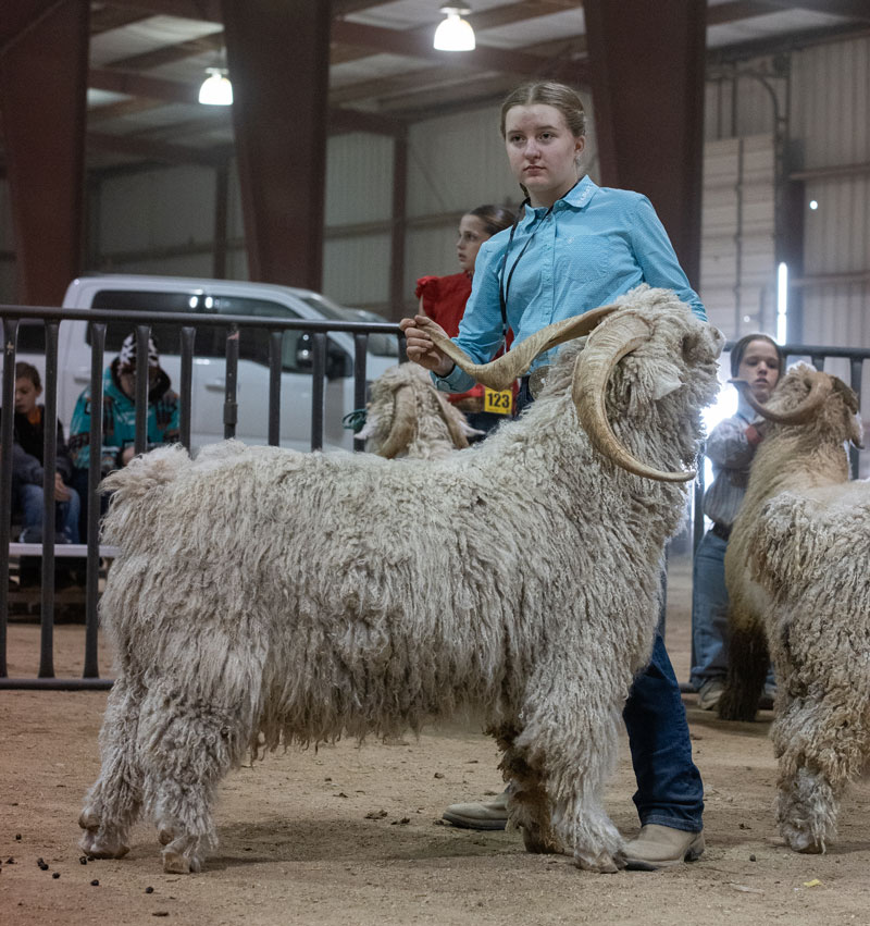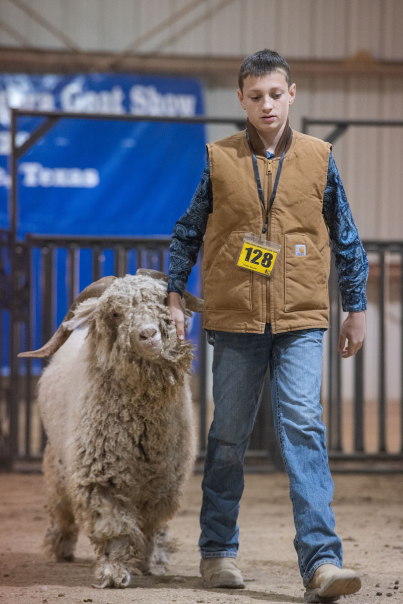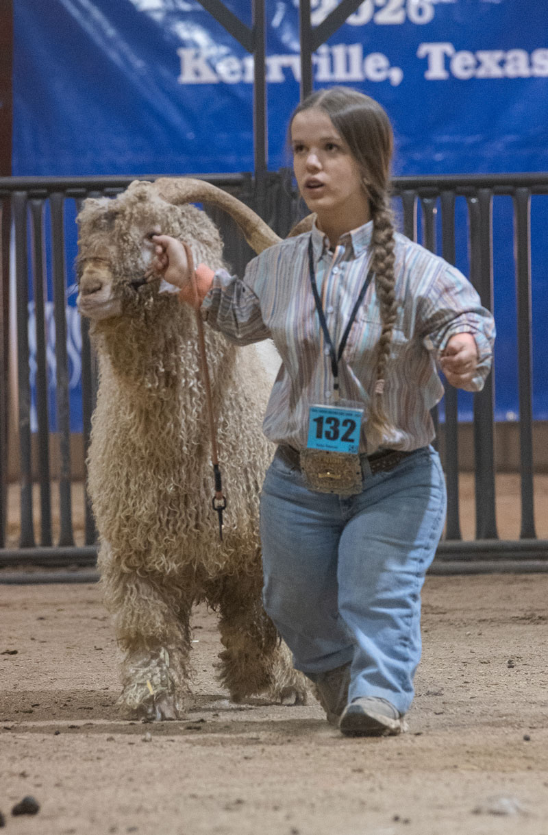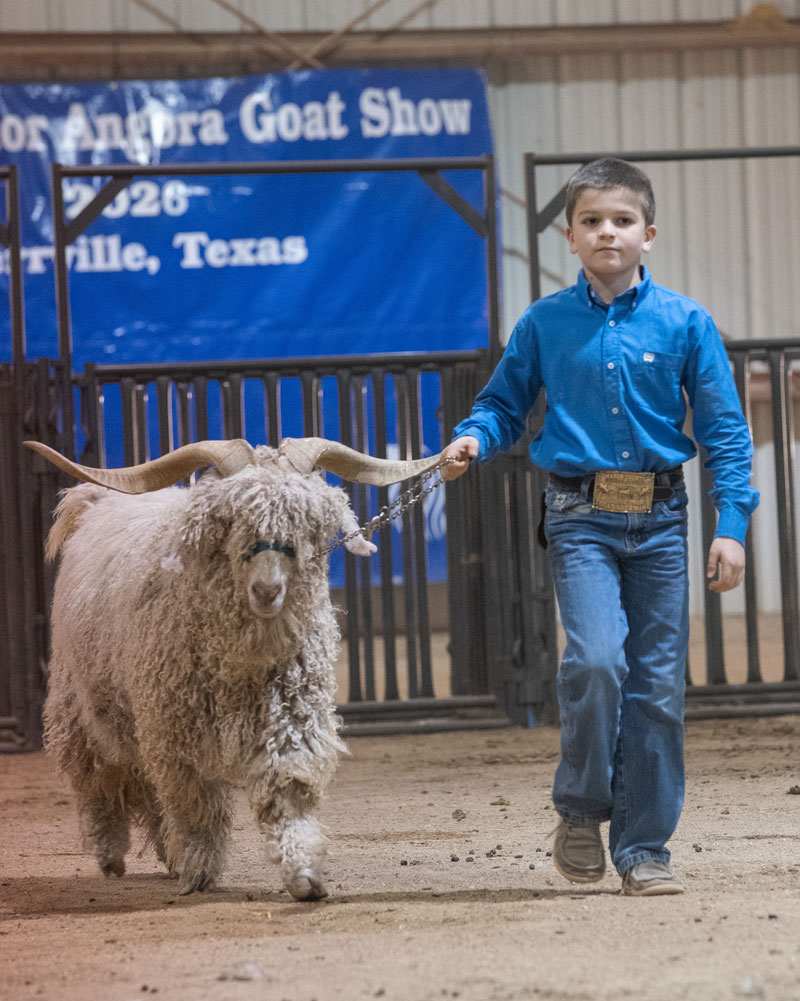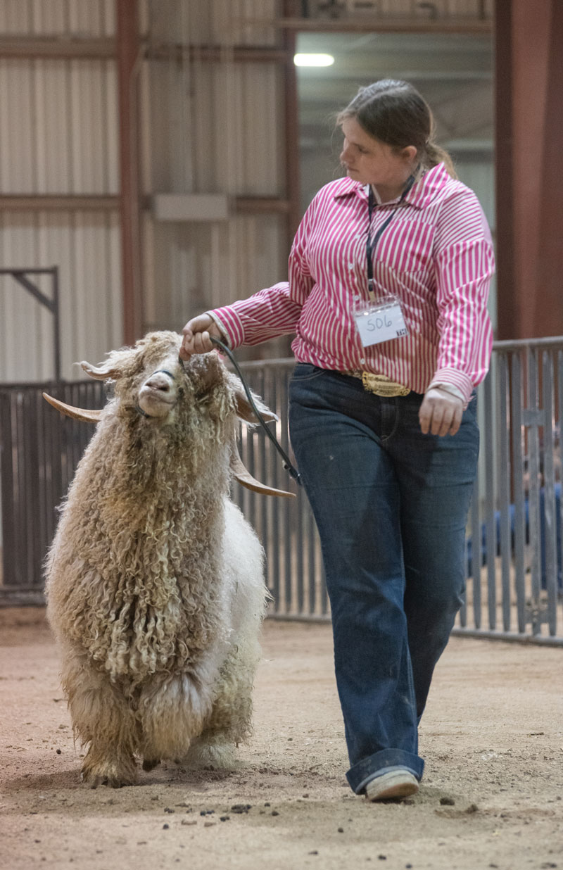 leads her goat into position for judging. |