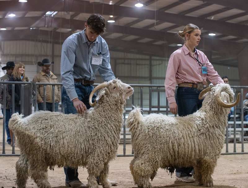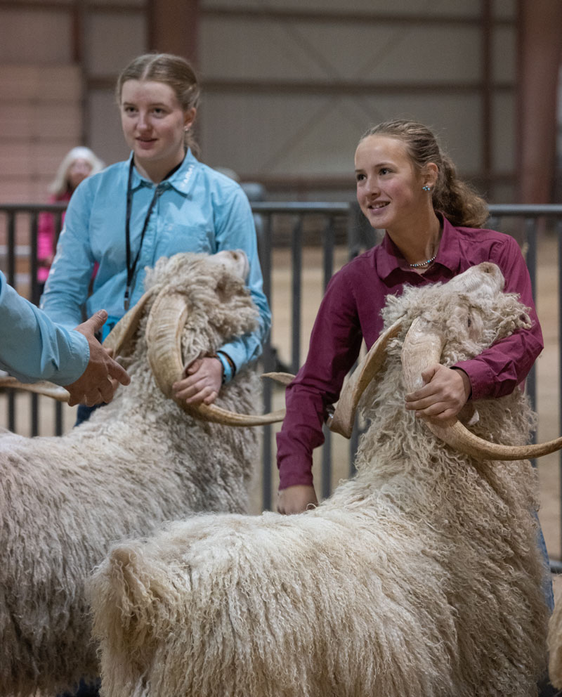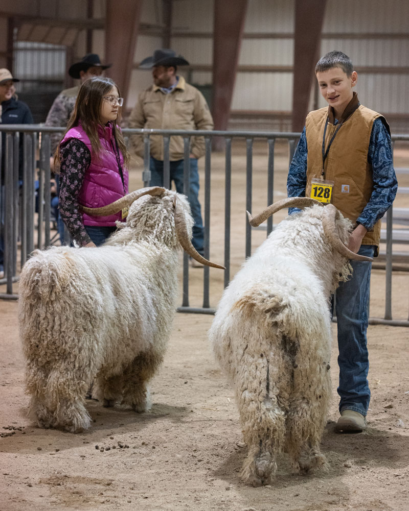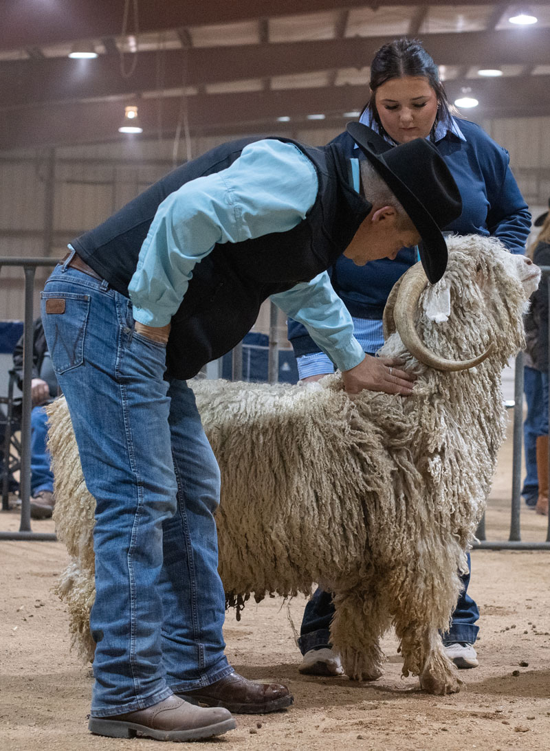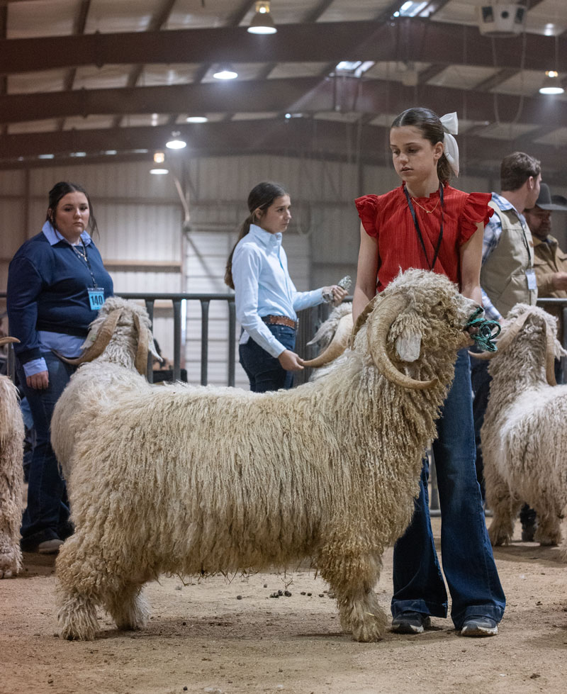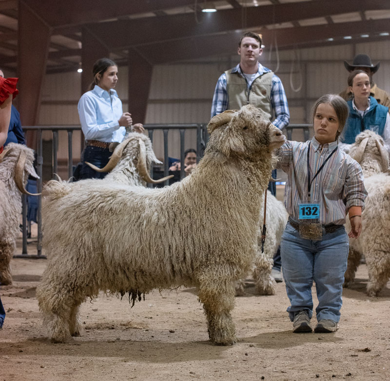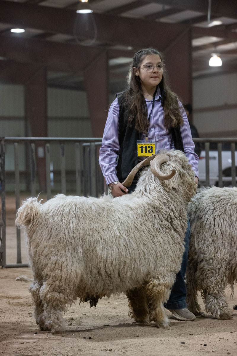 leads her goat into position for judging. |